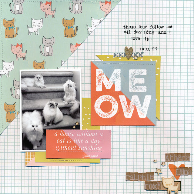 I've always been a collector, and having a few of them on display in my scrappy space is lovely. The Smurf collection began in 1982, most of those figures are original from my childhood. I also have Strawberry Shortcake dolls, Mr Potato Heads and my Blythe dolls. (The Super Mario belongs to my step son who just turned 16. He didn't want to give them up just yet, and suggested I put them up on a shelf for safekeeping.)